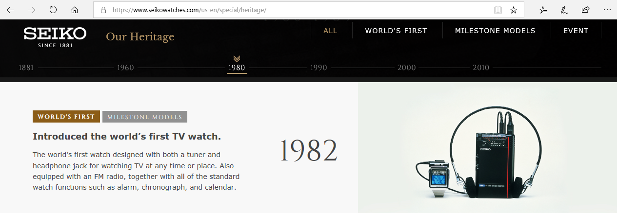 Guinness Book of Records showed in its 1984 edition the SEIKO TV-Watch