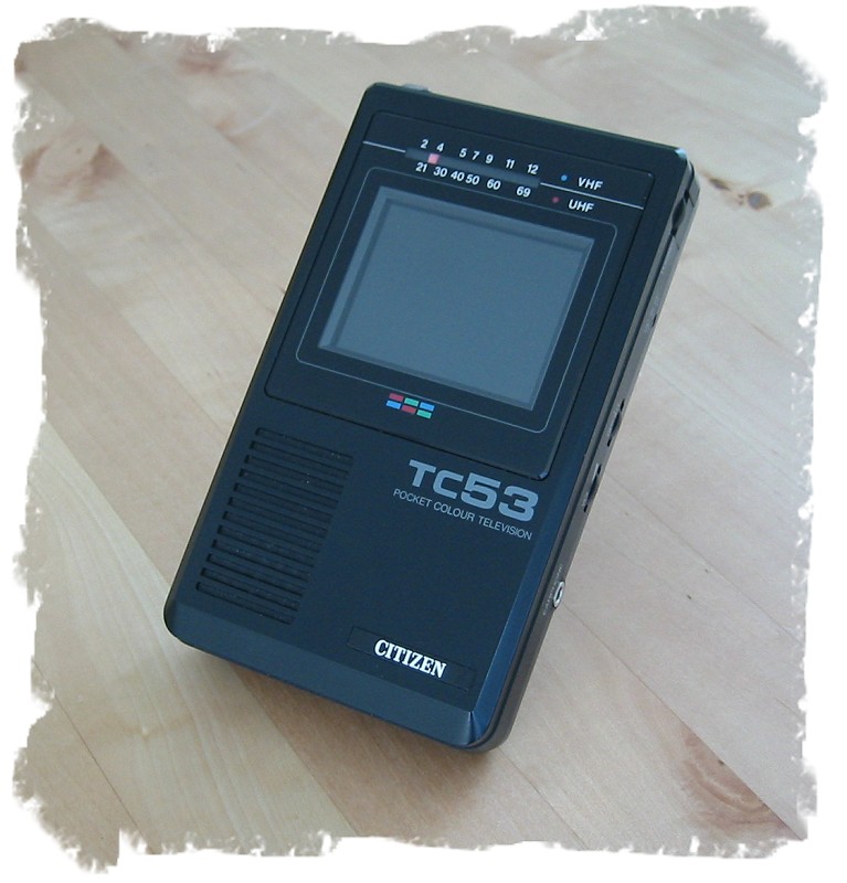 In Deutschland wurde das Gerät auch als Weltblick FF100 gesichtet und bei unseren französischen Nachbarn gab's ein sehr ähnliches Modell unter der Bezeichnung CITIZEN TC63 für den dortigen TV-Standard SECAM L. In den USA wurde der TC53 von Radio Shack in einer NTSC-Ausführung unter der Bezeichnung Pocketvision 23 vertrieben, in Belgien als Pocketvision 200 und in Japan als Maruman CTR-200 (1989). Viele weitere Details und tolle Innenansichten findet man in diesem kroatischen Elektronik-Blog.