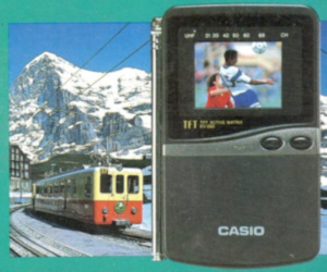 Ein hochwertiger Aktivmatrix-Bildschirm mit 3 Zoll gleich 76 mm Diagonale in einem unkonventionellen Gehäuse - das ist der CASIO TV-7700. Leider bemüht der Prospekt für den 7700er einmal mehr das Thema Sport, obwohl es oft keine große Freude ist, eine Sportübertragung mit einem Taschenfernseher zu verfolgen - selbst wenn dieser über ein TFT-Display verfügt.