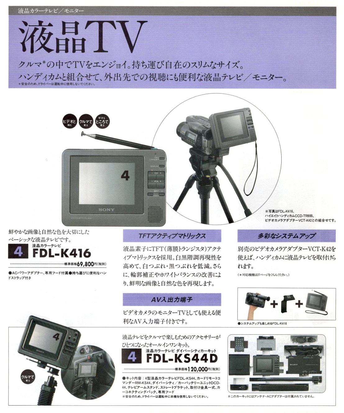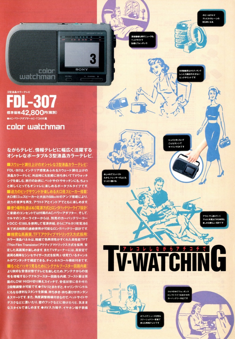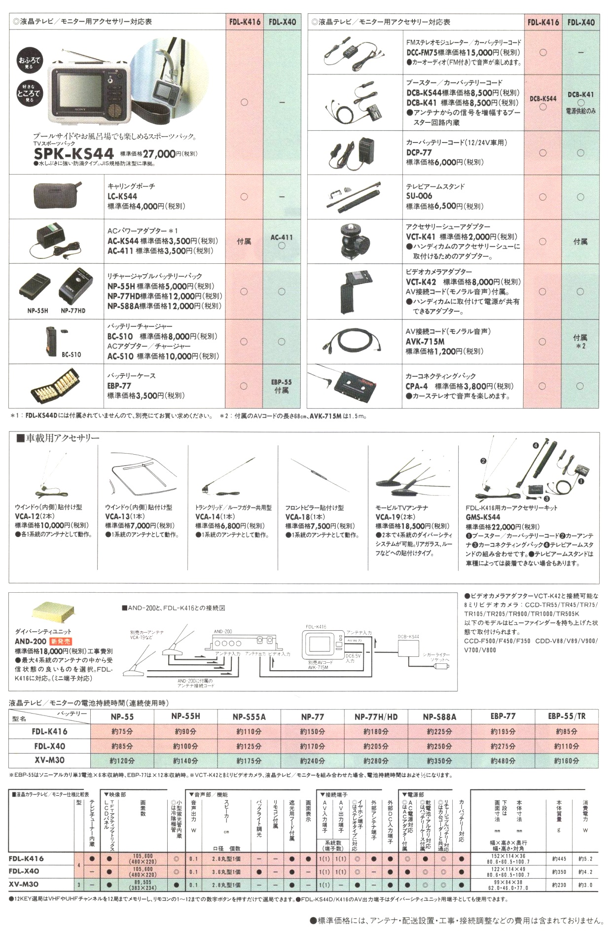 P.S. Mutmaßlich Ende 1992 / Anfang 1993 erschien in Japan der mehr oder minder baugleiche SONY FDL-K416 zum Preis von 68.900 Yen, das waren damals rund 700 DM. Abgesehen von der fehlenden Fernbedienung und den eingeschränkten Gehäusefarben konnte ich keine Unterschiede ausmachen, vermutlich fehlt dem FDL-K416 aber die helligkeitsabhängige Steuerung der Hintergrundbeleuchtung. Laut Zubehörkatalog passt das Allwettergehäuse des 400ers.