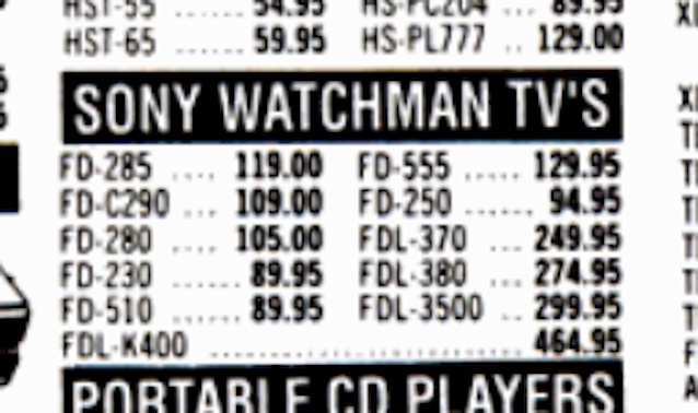 P.S.: Ebenfalls für den europäischen PAL-Standard wurde der SONY Watchman FDL-390CV entwickelt. Seine Besonderheit: Ein Kabeltuner, der auch den Empfang der Sonderkanäle S1/S01 bis S20 ermöglicht. Einige Jahre kannte ich das Gerät nur vom Datenblatt, bis mir Ende 2004 ein Leser aus Holland ein Foto seines (in Amsterdam) neu erworbenen 390CV zusendete ...