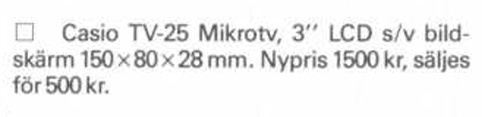 Entweder ab 1985 oder ab 1986 dürfte dieser CASIO TV-25 die Freunde technischer Spielereien erfreut haben - zum "Fernsehen" war diese Geräteklasse ja bekanntlich kaum zu gebrauchen. Was detaillierte Informationen zum TV-25 betrifft gilt: Bisher Fehlanzeige. Denn auch bei näherer Betrachtung sind kaum Unterschiede zum (Vorläufer?) TV-20 aus gleichem Hause auszumachen. Im praktisch identischen Gehäuse steckt ein etwas kleineres Display (64 statt 69 mm) und der Suchlauf-Wahlschalter wurde wegrationalisiert. Sobald ich näheres über den TV-25 erfahre, wird's hier veröffentlicht ... Vielleicht kann ja ein Leser weiterhelfen?