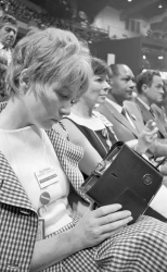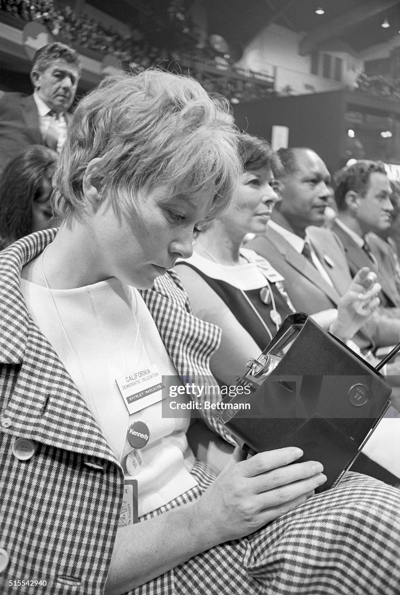 P.S. Auf dem Bild ganz rechts ist die US-Schauspielerin Shirley MacLaine zu sehen, wie sie auf dem Nationalkonvent der Demokraten 1968 nebenher ein bisschen TV guckt.