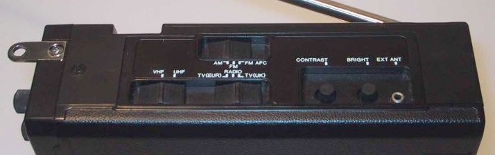 Ein originelles Designelement sitzt unmittelbar vor dem Lautsprecher: Das Schutzgitter ist drehbar gelagert und dient gleichzeitig als Skalenzeiger für die (manuelle) TV-Sendereinstellung. Drei integrierte Schaltkreise und 43 Transistoren sorgen für Bild und Ton. Die Stromversorgung erfolgt wahlweise über ein abnehmbares Batteriefach oder einen speziellen NiCd Akku (Typ BP-100V). Eine Antennenbuchse ist bei meinem Modell vorhanden.
