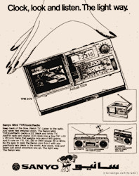 Ein Leser dieser Seiten aus Sachsen besitzt ein (zumindest optisch) identisches Gerät mit der Typenbezeichnung SANYO TPM 2140 (siehe Prospektausschnitt rechts). Und ein ebenfalls sehr ähnliches Modell - jedoch ohne Digitaluhr - wurde 1981 von SANYO in Japan unter der Bezeichnung TRP-25 angeboten.