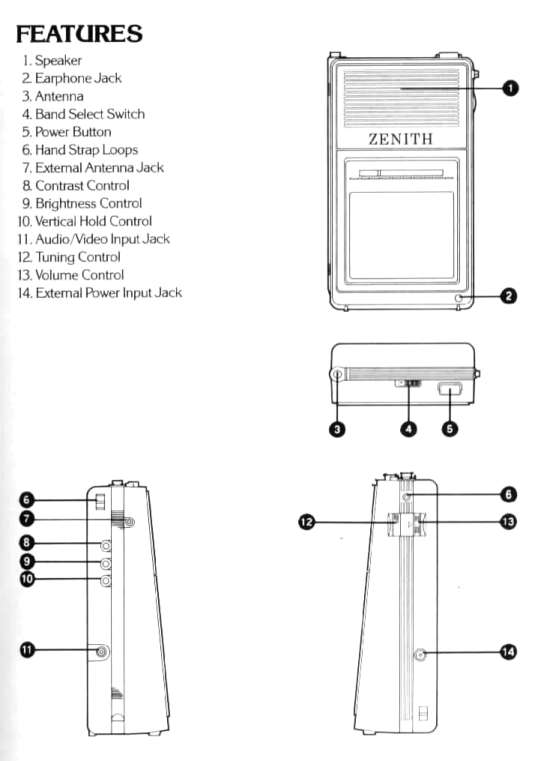 Alle sonstigen Daten klingen vertraut: Etwa 100 mm Bilddiagonale (Details), A/V- und Antenneneingang (jeweils eine 3,5 mm Klinkenbuchse), rund 1.200 Gramm Gewicht mit 4 Baby-Akkus. Mein Realistic wurde in Korea, der Zenith in Mexiko gefertigt.