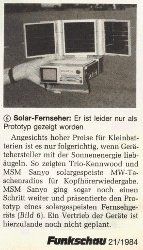 P.S.: Die Fachzeitschrift Funkschau veröffentlichte im Herbst 1984 einen kurzen Beitrag über eine "solargespeiste" Version des SANYO ...