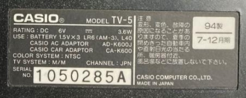 P.S. Ein augenscheinlich sehr ähnliches Modell (jedoch ohne Channel-Call-Knopf an der Frontseite) gab's um 1994 herum in verschiedenen Regionen der Welt unter der Bezeichnung CASIO TV-5.