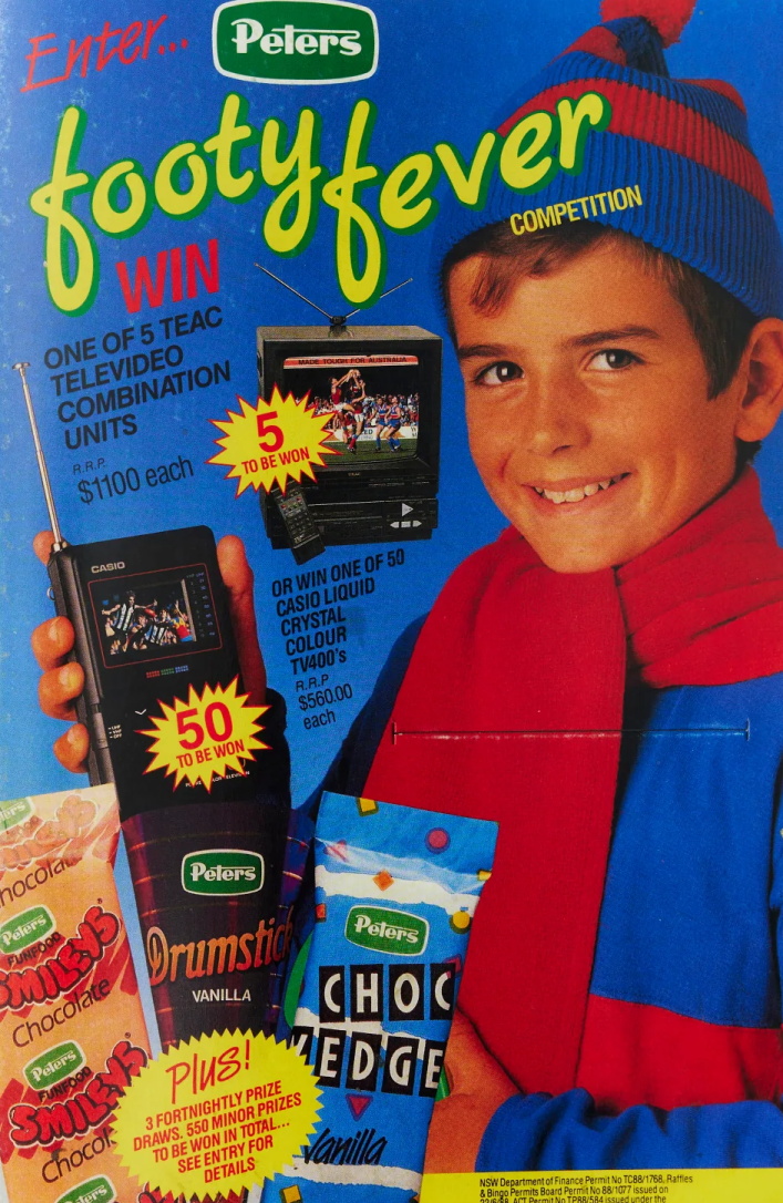 Besondere Kennzeichen: Keine. Schlichtes Design, passives Farbdisplay (hier: 2 Zoll bzw. 28 * 53 mm), kaum Schnickschnack. Im Gegensatz zum Modell für den deutschen Markt (auf dem linken Bild rechts) verfügt die US-Version über einen Antenneneingang (3,5 mm, links unten erkennbar) und einen NTSC-typischen Regler für die Farbkorrektur ("Tint"). Laut Bedienungsanleitung reicht ein Alkaline-Batteriesatz für 3 Stunden TV-Betrieb. In Deutschland kostete der TV-400 seinerzeit 399 DM. Wer nicht soviel Geld übrig hatte, konnte (zumindest in Australien) einen gewinnen.