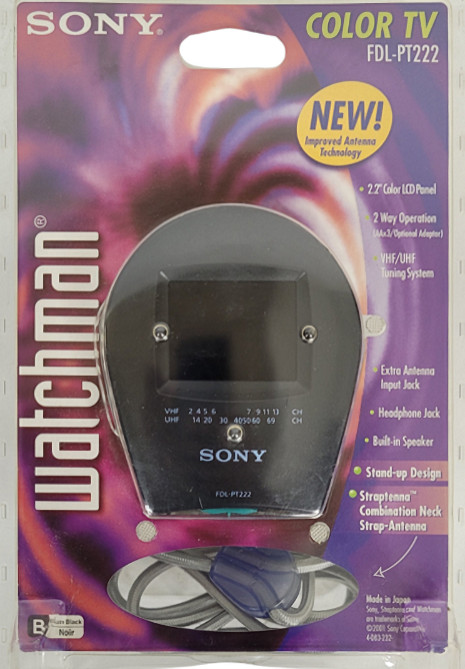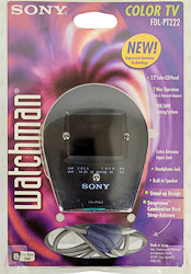 Aus dem Modelljahr 2002 stammt dieser SONY FDL-PT222. Für geschätzt etwas mehr als 100$ erhält der Käufer ein zwar relativ einfach ausgestattetes Gerät, aber das "knuffige" Design (92 * 111 * 67 mm) macht das zu einem guten Teil wieder wett. Wie viele der neueren "Watchmänner" besitzt der FDL-PT222 eine so genannte Straptenna, das ist eine in die Kordel eingearbeitet Antenne. Dank Improved Antenna Technology soll sie dem Gerät (gegenüber dem identisch aufgemachten Vorgängermodell FDL-PT22, Foto ganz links) zu einer noch besseren Empfangsleistung verhelfen. Ein dokumentierter Verkaufspreis des FDL-PT22 vom September 1995 liegt bei 105$, er stammt aus einem Inserat in der Zeitschrift Popular Photography.