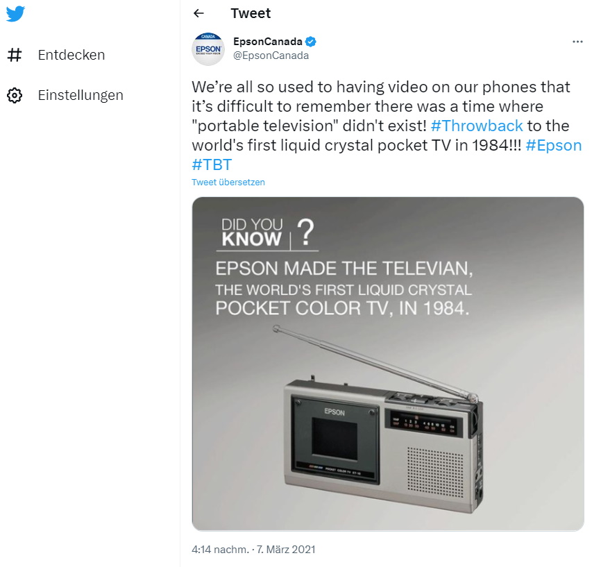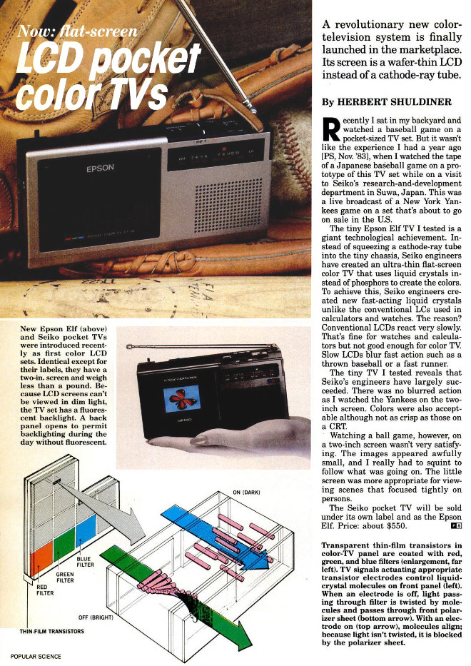 TV-Gerät mit flachem LC-Bildschirm! Mitte der Achtziger arbeitete Herr Morozumi für EPSON