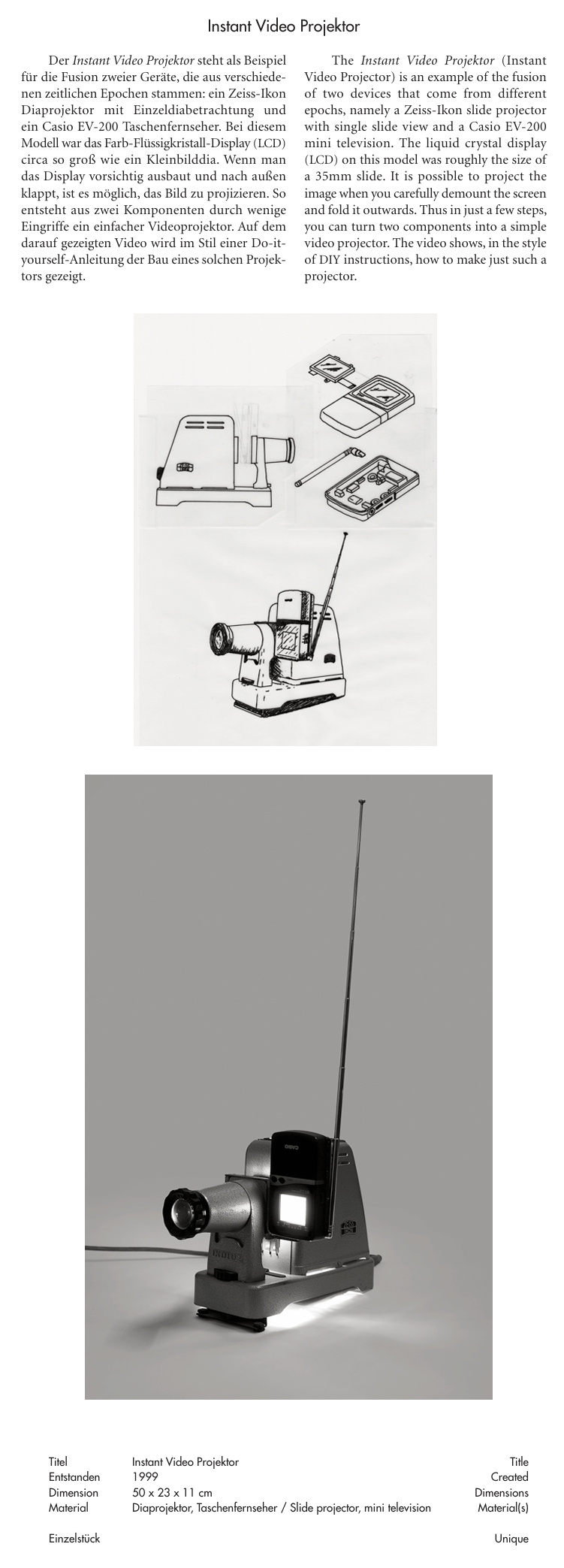 Aufgrund der Bildschirmdiagonale soll sich der EV-200 übrigens recht gut zum Bau eines Videobeamers unter Verwendung eines herkömmlichen Diaprojektors eignen. Allerdings steht dieser Idee ein echtes Problem entgegen: Dem EV-200 fehlt der dafür notwendige Videoeingang. Mit ein wenig Bastelgeschick und einem spitzen Lötkolben kann man jedoch auch diese Herausforderung meistern: Jonas Tschirner beschreibt in seinem Wiki, wie man einen Videoeingang nachrüstet. Und der österreichische Künstler David Moises hat 1999 aus dem EV-200 einen Instant Video Projektor gefertigt.