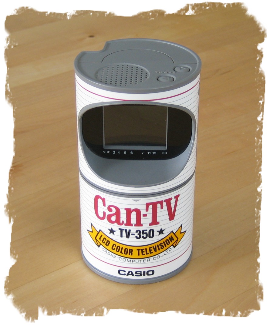Fernsehen aus der Konserve einmal anders :-) Während die Modellnummern der meisten CASIO-Fernseherchen keiner durchgängigen Logik folgen, ist diese hier sonnenklar: Offenbar fassten Getränkedosen in Japan früher oft 350 Milliliter - da lag es auf der Hand, den dosenförmigen CASIO TV-350 genau so zu benennen.