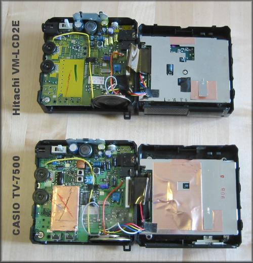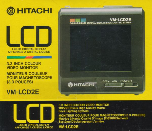 Und vermutlich genau deshalb hat der japanische Hersteller Hitachi den TV-7500 in einer Sonderversion als Zubehör für die eigenen Videokameras unter der Bezeichnung Hitachi VM-LCD2E produzieren lassen (rechts auf dem linken Bild). Mitgeliefert werden das erforderliche Montagematerial zur Befestigung an verschiedenen Kameramodellen und ein spezielles A/V-Kabel. Die wesentlichen Unterschiede zum CASIO: Das Empfangsteil ist nicht bestückt, Teleskopantenne und Senderwahltasten sind mit Dekorationselementen abgedeckt.