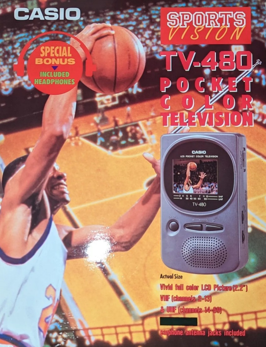 Wieder eines dieser Geräte, zu denen mir trotz intensiver Recherche einfach nichts spektakuläres einfällt: Der CASIO TV-480 aus dem Jahr 1993 ist - wie fast alle Vertreter der 400er Baureihe - vollkommen schmucklos. Keine besonderen Extras, allenfalls der bei "deutschen" Ausführungen verstöpselte Antenneneingang ist erwähnenswert. Das passive Display misst 54 mm in der Diagonalen, gegenüber dem Vorgängermodell TV-470 wurde anscheinend nur das Gerätedesign überarbeitet und die technischen Anforderungen vielleicht etwas preisgünstiger umgesetzt.