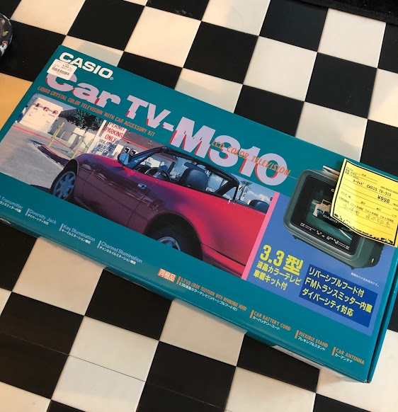 Irgendwie kam er mir gleich bekant vor: Dieser "japanische" CASIO TV-C500 aus dem Jahr 1993 entspricht weitgehend dem "europäischen" TV-7100. Auf den ersten Blick eher unauffällig, bei näherer Betrachtung aber schon etwas Besonderes. Das "C" im Namen verrät es: Es ist ein Fernseher, der für den längerfristigen Einsatz in Fahrzeugen gedacht ist. Und spätestens der Blick auf die Rückseite bringt Gewissheit - dort findet man nämlich den Schalter für den integrierten UKW-Sender, der den Fernsehton zum Auto-, LKW- oder Boots-Radio überträgt. Wahlweise auf 76,7 oder 78,7 MHz. Also in einem Frequenzbereich, den europäische oder US-amerikanische Radios nicht (legal) empfangen. Als richtiger "CAR-TV" besitzt der C500, parallel zu einem normalen 3,5-mm-Antenneneingang, eine zusätzliche Buche zum Anschluss einer Diversity-Antenne - so wie auch der TV-7100. Zur Befestigung im Fahrzeug findet sich an der Unterseite ebenfalls eine Art Blitzschuh.